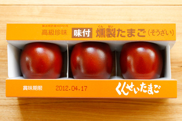 燻製たまごの王様。桜の木片でなんと7日間もかけて燻製し申した。味付けには塩のみを使用と、燻製の王道を行く決定版。