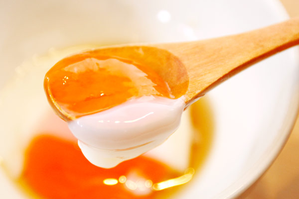 濃厚な黄身の深みを持ちつつ切れ味鋭い爽やかな後味は、さながら日本刀のやう。 生たまごかけご飯で、濃厚と爽やかさの奇跡の両立をご堪能あれ!